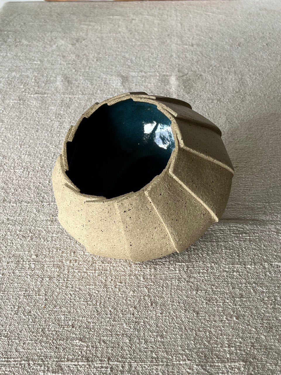 The inside of this vase is glazed with lead free glaze making it waterproof while the outside is left unglazed to celebrate the natural beauties of exposed stoneware clay.