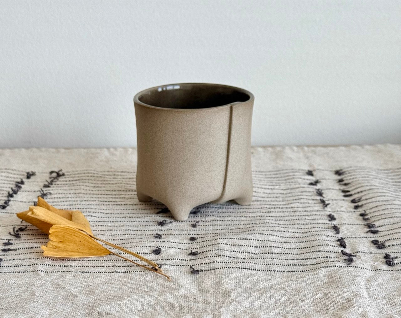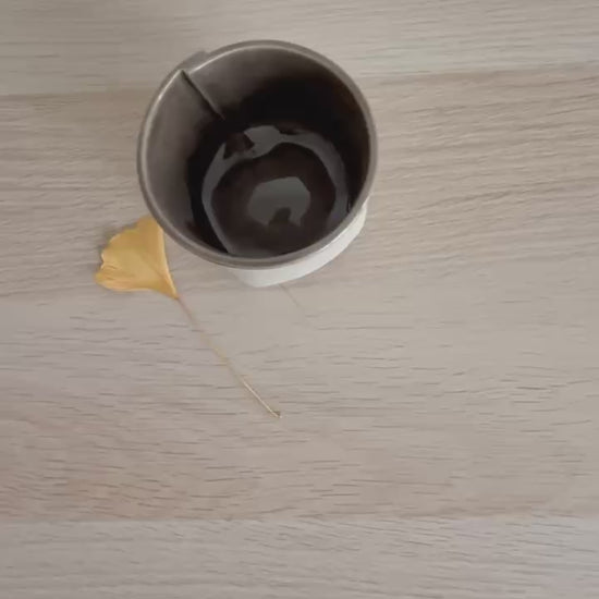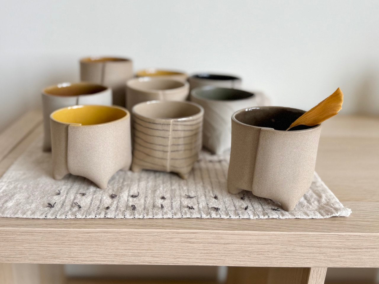 This yunomi is offered at a discounted price due to a small glaze fault on the interior and a darker patch on the exterior that occurred during firing. These faults are only aesthetic and have no impact on the functionality of this piece.