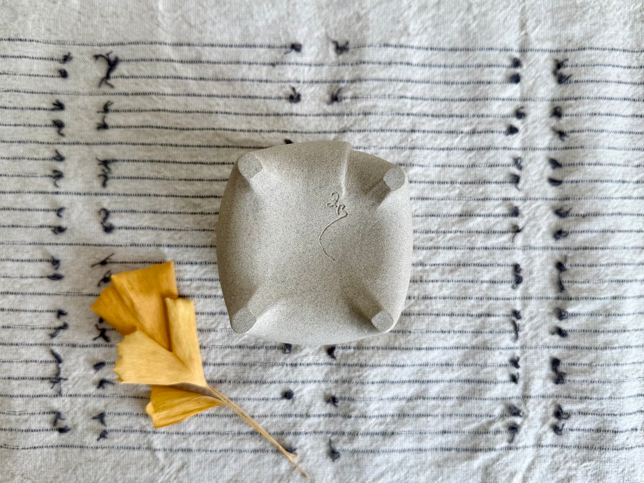 The last photo shows this yunomi along side a matching yellow one from this same collection.